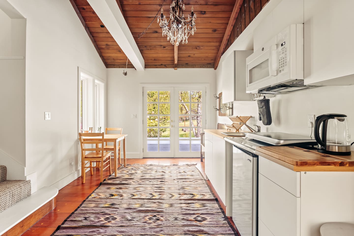 Despite the Retreat feeling very private, it is separated from the main house by secure doors that have some added sound insulation (the owners live and work on site). Though we love pets, we don’t allow them at the property. This is meant to be a peaceful retreat for you and the owners and neighbors who live here, so we ask that you minimize loud noise and honor quiet hours between 10pm and 8am, or 11pm on Friday and Saturday nights. The stove is an *induction* stove, which means it won’t work with aluminum and some other types of pots and pans. We have all the basic items at the property for this small kitchenette.