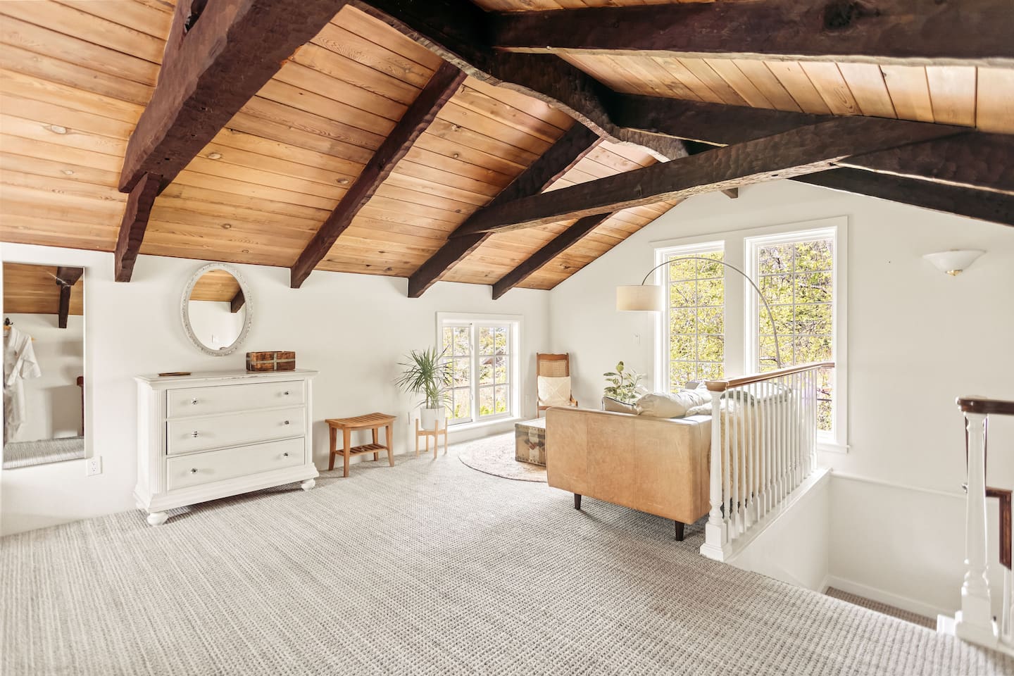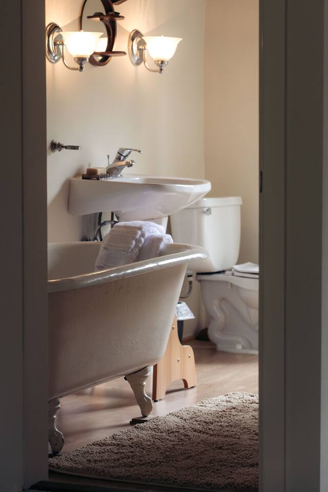 The loft centers around a leather couch and reading area, with a plush king size bed and light-filled views over the spacious yard and garden. We’ve provided robes, slippers and natural bath products for your luxurious moments in the claw foot tub. (Note: we installed a shower that is quite low and not great for tall people—it’s mainly a functional addition for quick showers if the tub isn’t enough). Downstairs you’ll find a well appointed kitchenette with an induction stove and everything you need to make small meals. Coffee, multiple teas, and some light food is provided in case you get in late. We encourage you to step outside on the porch or hang out in our spacious shared front yard. The Retreat loft has its own entrance and the entire unit is private and secure, but does share walls with the main house where the owner or other Airbnb guests will be residing. Sound can travel between the walls. Please note the property is shared, so we ask you to honor quiet hours between 11pm and 8am.