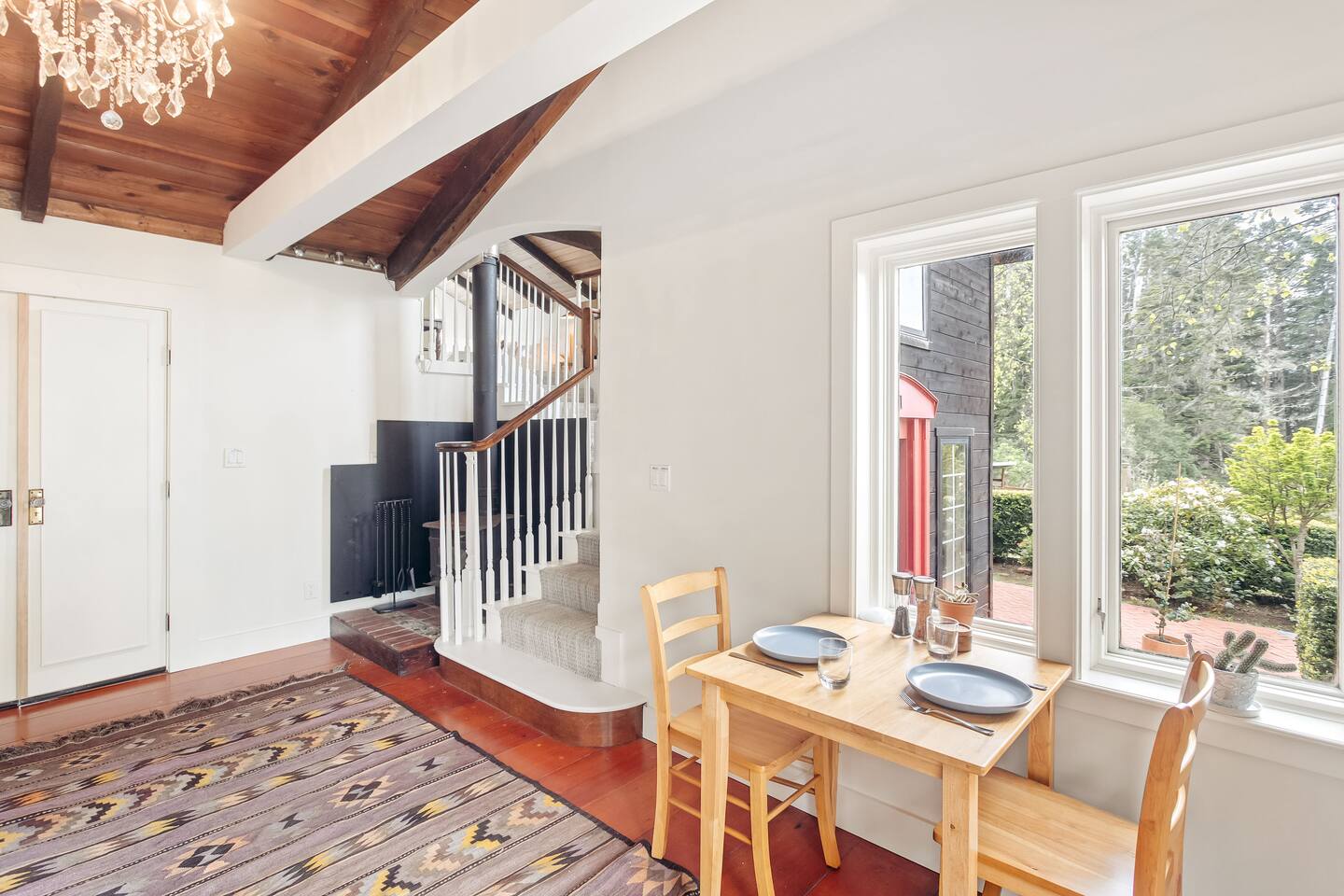 Some natural gems are walkable from the house, including a huge sinkhole where waves roll in through a cave, Van Damme state beach with kayaking and firepits, and the Van Damme State Park with trails into the towering redwood forest. The Little River Inn has a bar with the best view around, excellent American cuisine, and golf and tennis for a small fee. A short four-minute drive takes you to stunning Mendocino Town--the preserved Victorian gem. Eight excellent restaurants are within a ten minute drive from the property, as well as multiple more modest cafes and sandwich places. An endless number of mind-boggling coastal views, beaches, forest walks, and other nature experiences can be found up and down the nearby coast.